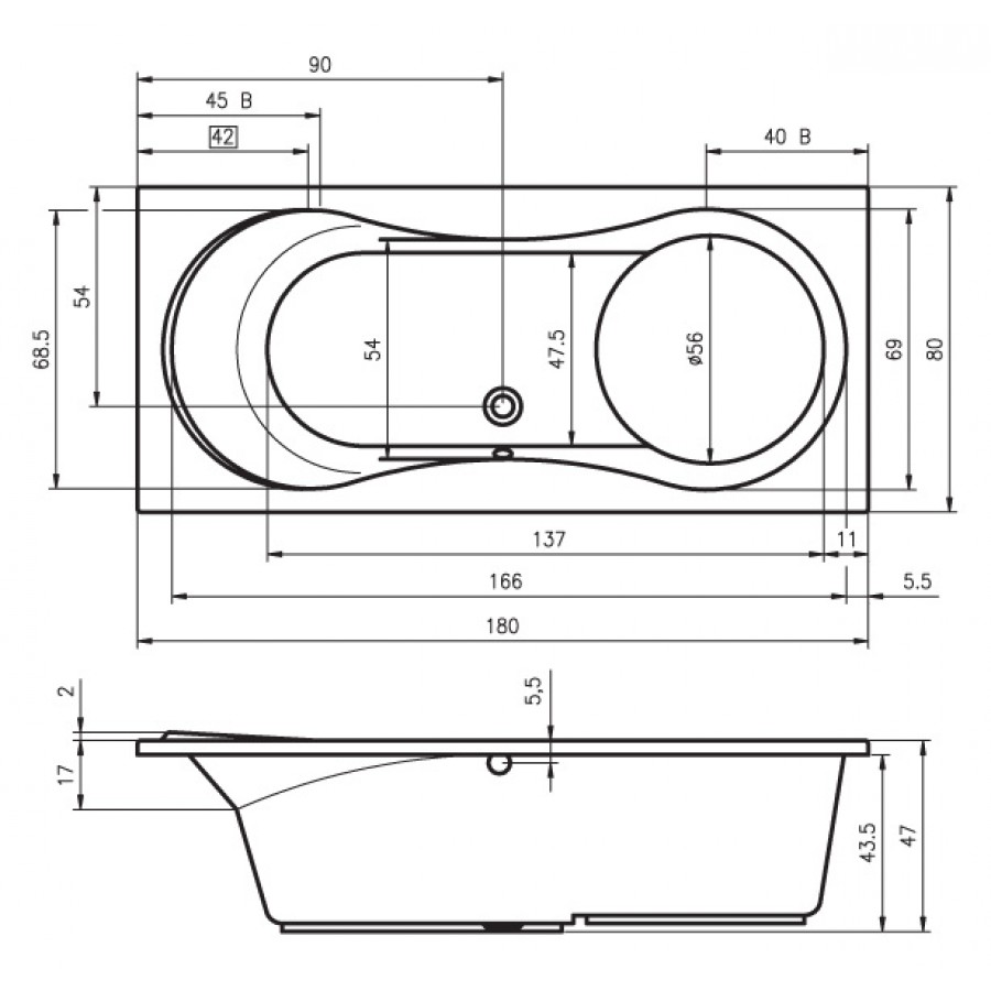 Акриловая ванна RIHO Tofield 180x80 без гидромассажа