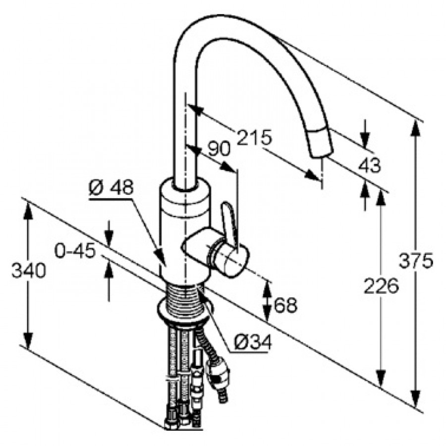 - поворотный (230°), выдвижной излив