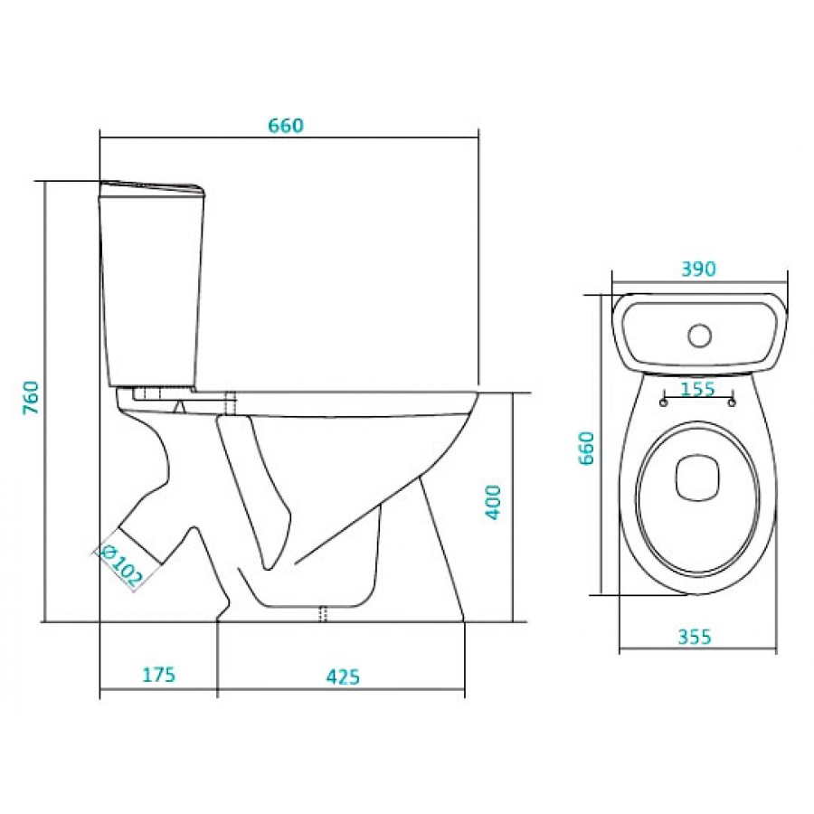 • Унитаз напольный с бачком (объем смывного бачка 6 литров), белый