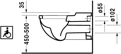 - Унитаз подвесной (220309) - вертикальный смыв, имеющий 6-литровый смыв (Для инвалидов на колясках)