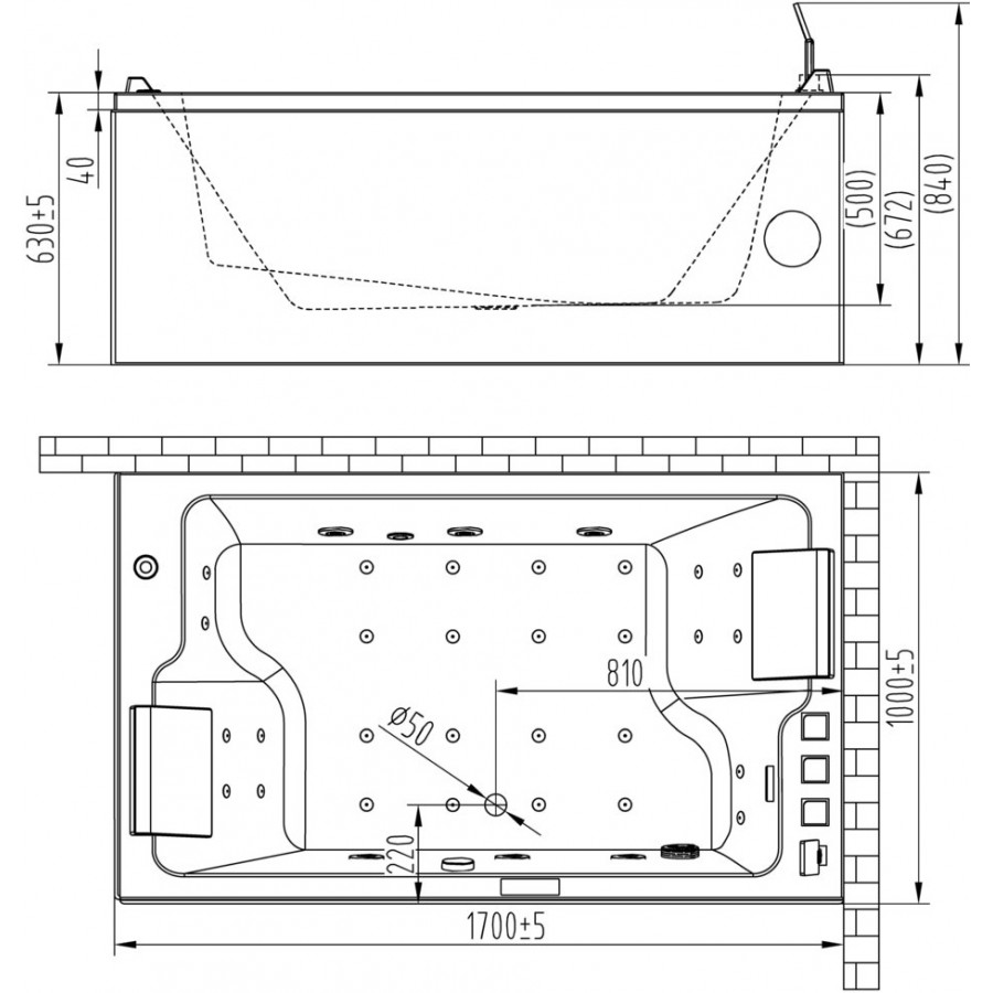 Акриловая ванна Orans BT-62115B L 170x100 с гидромассажем
