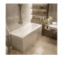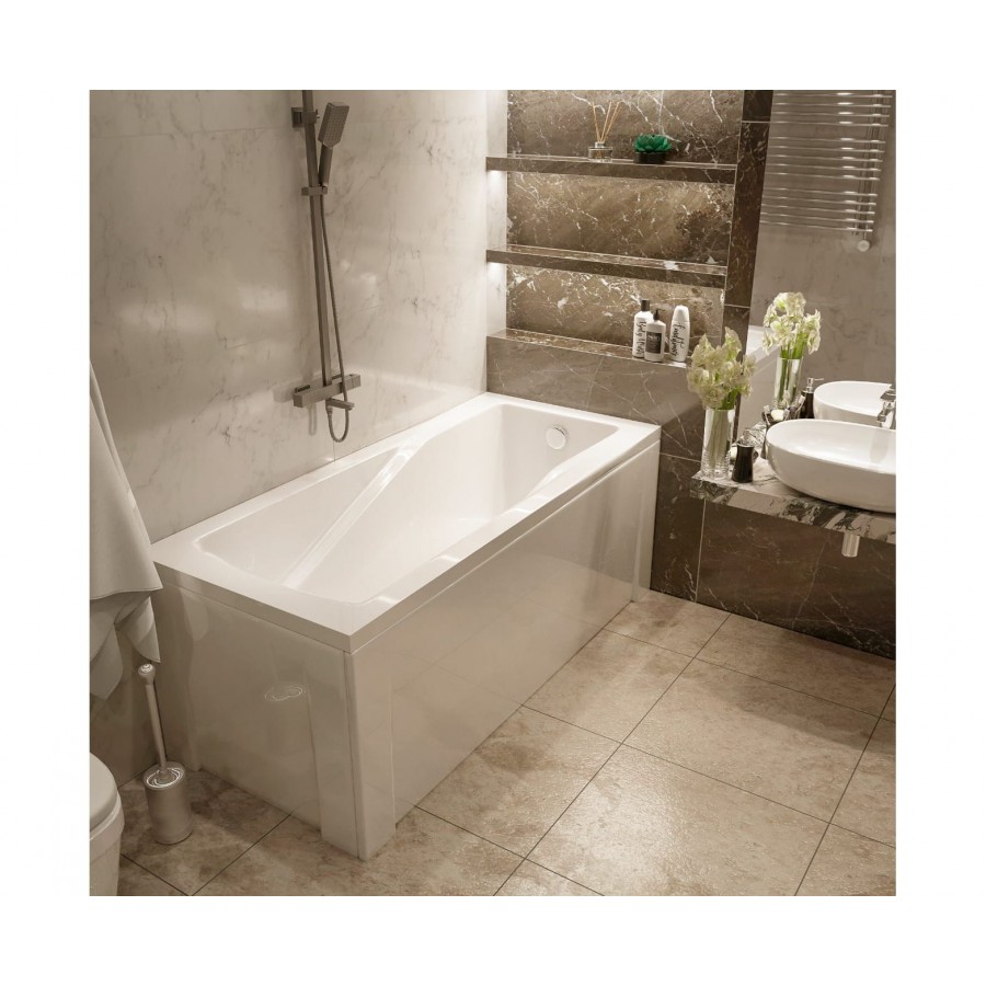 Прямоугольная чаша армирована стекловолокном, что придает нужную жесткость, ударопрочность, а также защиту от деформации. Вода при наборе не грохочет о дно и остается теплой длительное время. Нагреваясь, материал не выделяет вредных веществ. Поверхность обладает антибактериальными свойствами. Не нуждается в применении специализированных моющих средств, так как устойчива к загрязнению, царапинам и впитыванию запахов.
