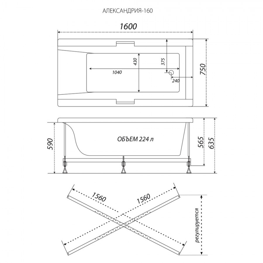 Акриловая ванна Triton Алекса 160х75