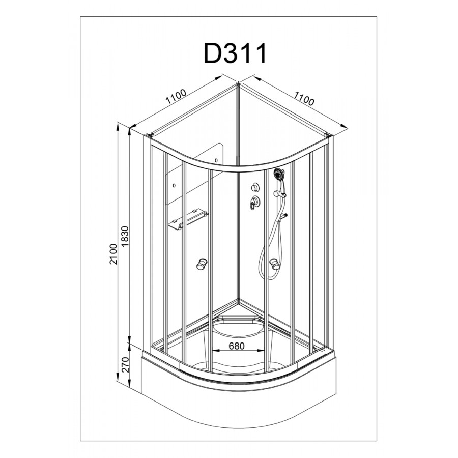 Душевая кабина AvaCan D311 110х110 без крыши - на среднем поддоне. Душевые кабины AvaCan обладают превосходным качеством и обеспечивают самый высокий уровень комфорта от приема водных процедур. Широкий ассортимент и разнообразие функций позволит подобрать модель отвечающую именно Вашим требованиям.