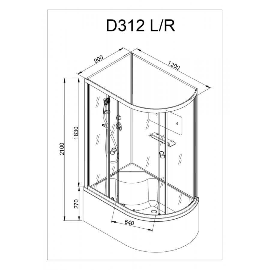 Душевая кабина AvaCan D312L 120х90 без крыши - асимметричная на среднем поддоне. Душевые кабины AvaCan обладают превосходным качеством и обеспечивают самый высокий уровень комфорта от приема водных процедур. Широкий ассортимент и разнообразие функций позволит подобрать модель отвечающую именно Вашим требованиям.