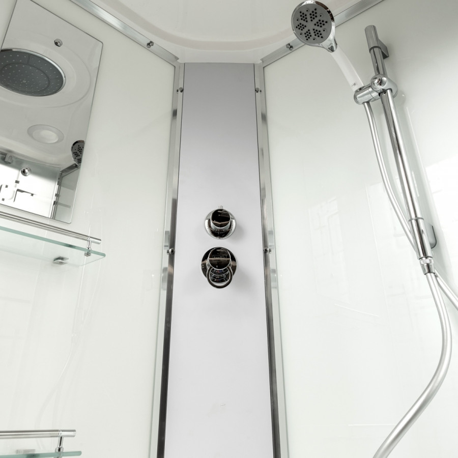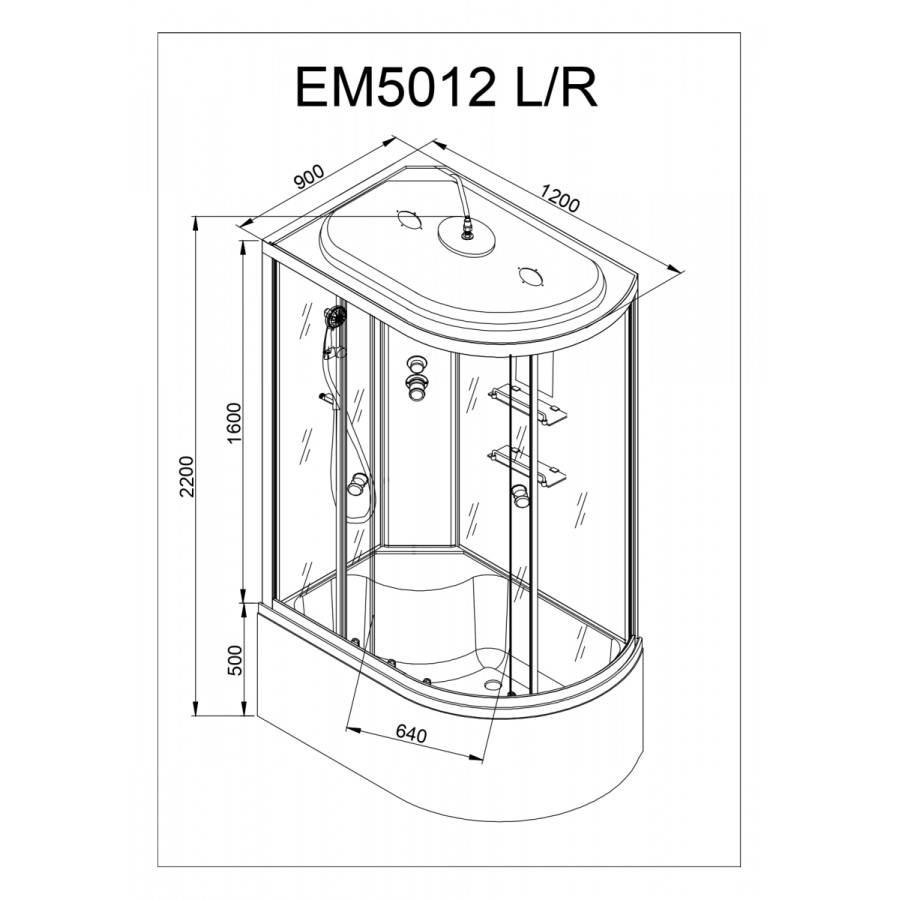 Душевая кабина AvaCan EM5012L 120х90 – с оригинальным матовым рисунком на передних стеклах. В конструкции душевой кабины с высоким поддоном предусмотрено литое сиденье, оно сделает принятие душа максимально комфортным и удобным для пользователей, которым трудно стоять.