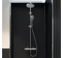 Тотальный дизайн душевой системы Hansgrohe в действии: все детали душевой системы – от пропорций ручного и верхнего душей до рисунка расположения форсунок на лейках – подчинены единой концепции в ультрамодном стиле Dynamic Organic.