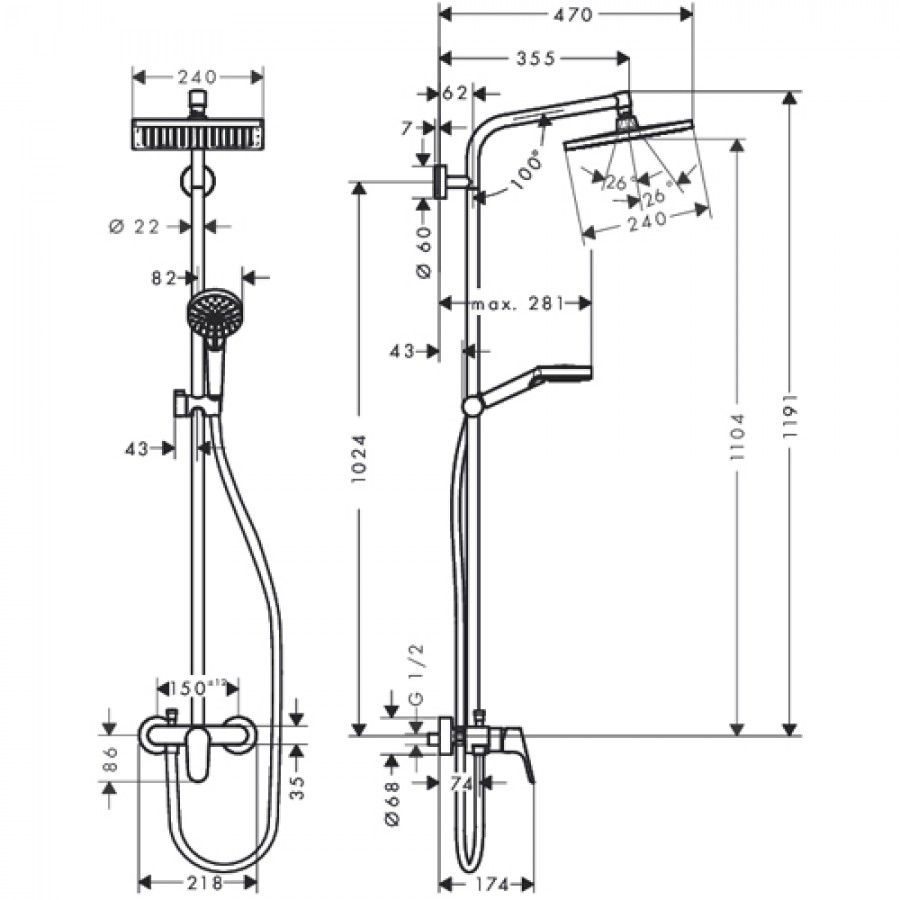 Душевая система Hansgrohe Crometta E 240 1jet Showerpipe 27284000
