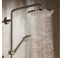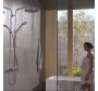 Тотальный дизайн душевой системы Hansgrohe в действии: все детали душевой системы – от пропорций ручного и верхнего душей до рисунка расположения форсунок на лейках – подчинены единой концепции в ультрамодном стиле Dynamic Organic.