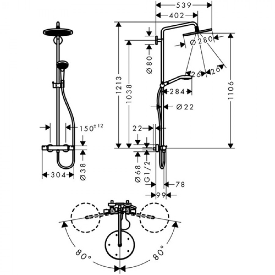 Душевая стойка Hansgrohe Croma Select 280 Air 1jet Showerpipe 26790000