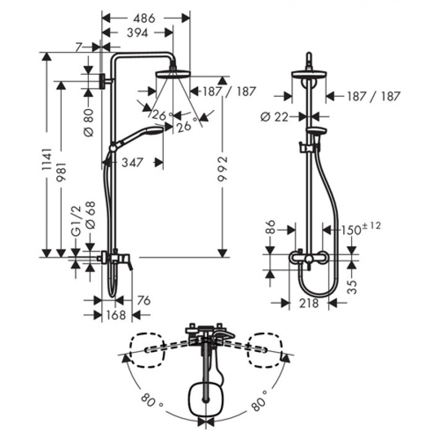 Душевая стойка Hansgrohe Croma Select E 2jet 27258400
