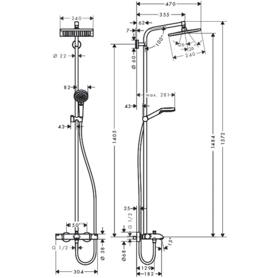 Душевая стойка Hansgrohe Crometta E 240 1jet Showerpipe 27298000