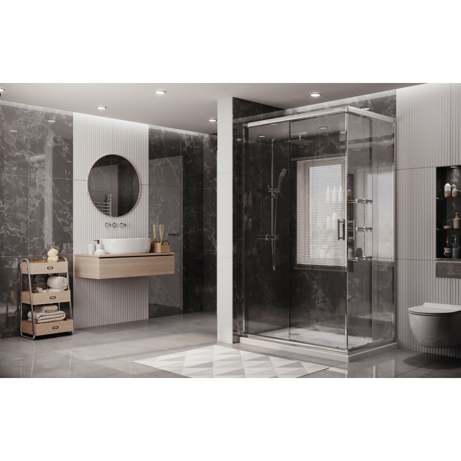 Душевой уголок Ambassador Kingston 14011101 120х80. Эффективное защитное покрытие EasyClean помогает содержать чистоту на внутренней и наружной стороне стекла, благодаря чему капли воды не удерживаются на поверхности и стекают, не оставляя следа. Ультрапрозрачное стекло в исполнении CrystalPure ®. Вместо привычного зеленоватого оттенка, вы получаете исключительно кристальную прозрачность с голубым оттенком по краю стекла. Толщина полотна 6 мм, согласно европейскому стандарту PN:EN 12150:1. Уплотнители обеспечивают 100% герметичность изделия, благодаря плотному соединению стекольного полотна со всеми элементами душевого ограждения.