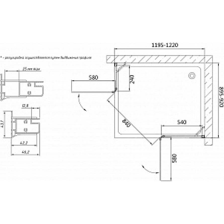 Душевой уголок Vegas Glass AFA-F 120х90 07 01 R профиль матовый хром, стекло прозрачное