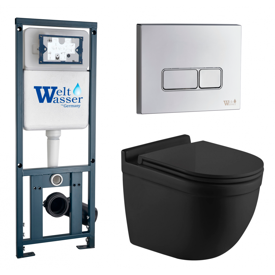 Комплект Weltwasser 10000010710 подвесной унитаз Heimbach 041 MT-BL + инсталляция Marberg 410 + кнопка MAR 410 SE