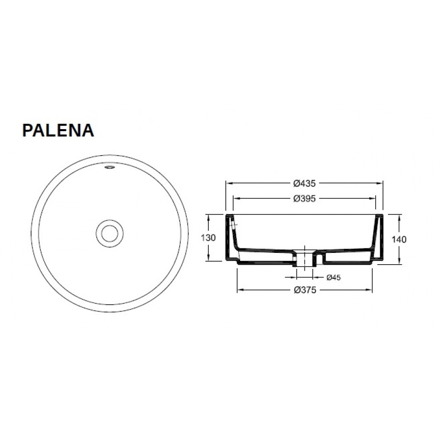 Раковина накладная Valadares PALENA 43см, круглая (без отв под смеситель)