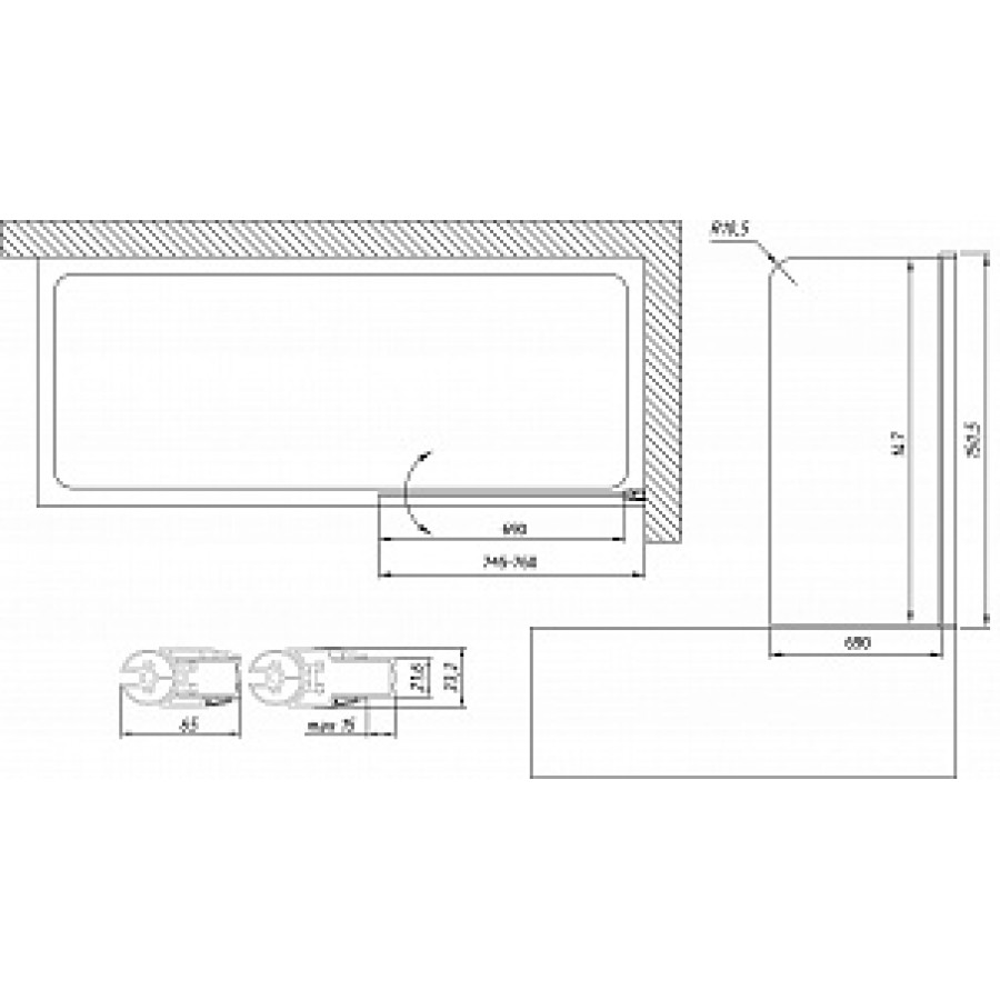 Шторка на ванну Vegas Glass EV Lux 0075 07 01 R профиль матовый хром, стекло прозрачное