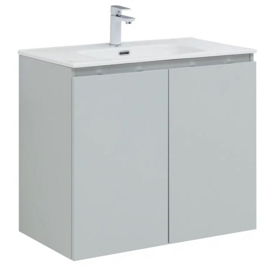 Тумба под раковину Aquanet Алвита New 80 подвесная 2 дверцы серый 277528