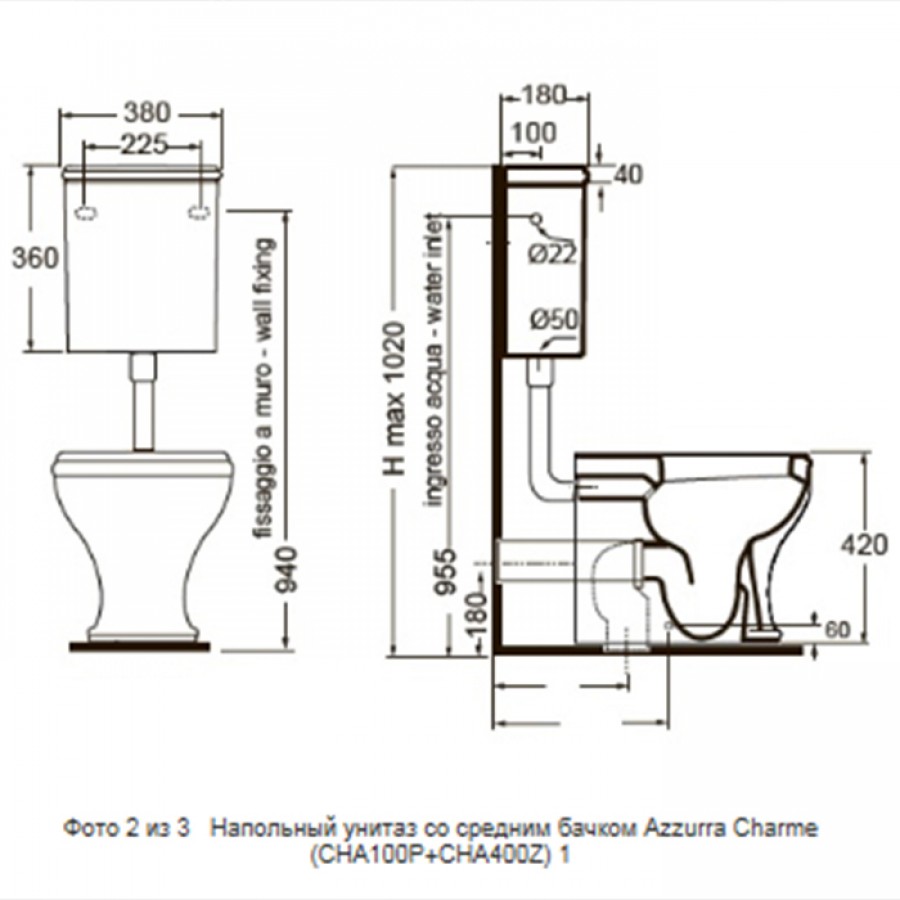 Унитаз напольный Azzurra Jubilaeum JUVCTPB00000BI со средним бачком, хром