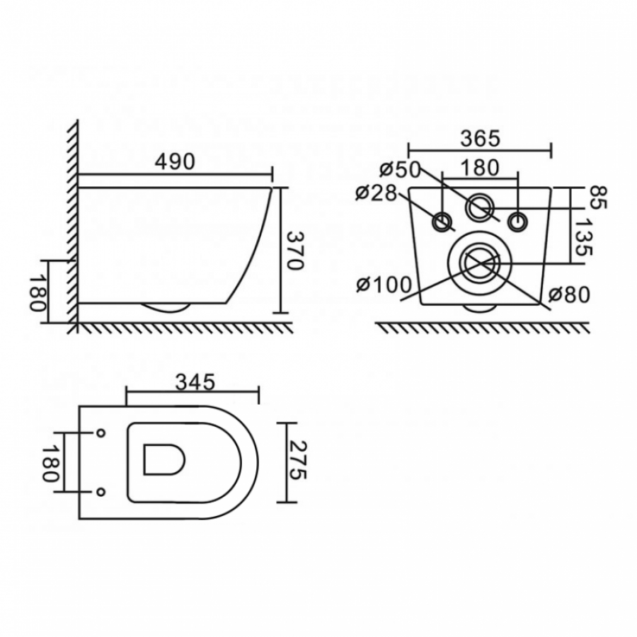 - Чаша подвесного унитаза Colorato BB062CHR-MB