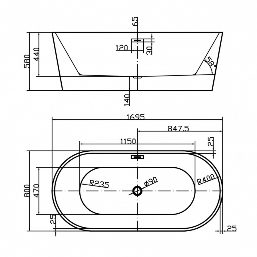 Ванна акриловая отдельностоящая SWEDBE VITA 8800G 170х80