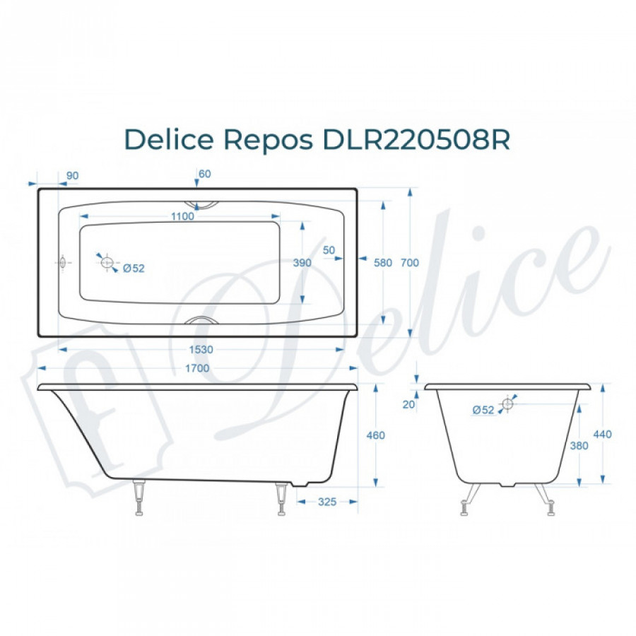 Delice Repos 170х70 с черными матовыми ручками - дизайнерская модель чугунной ванны, отличающаяся характерными строгими линиями. Ванна имеет увеличенную глубину и обладает повышенной комфортностью. Благодаря большой глубине и качественному материалу, надо
