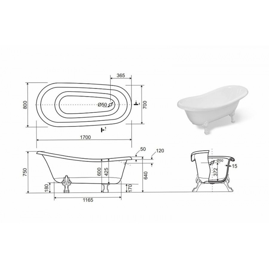 Ванна из искусственного камня Creto Corsica 170x80 ножки бронза