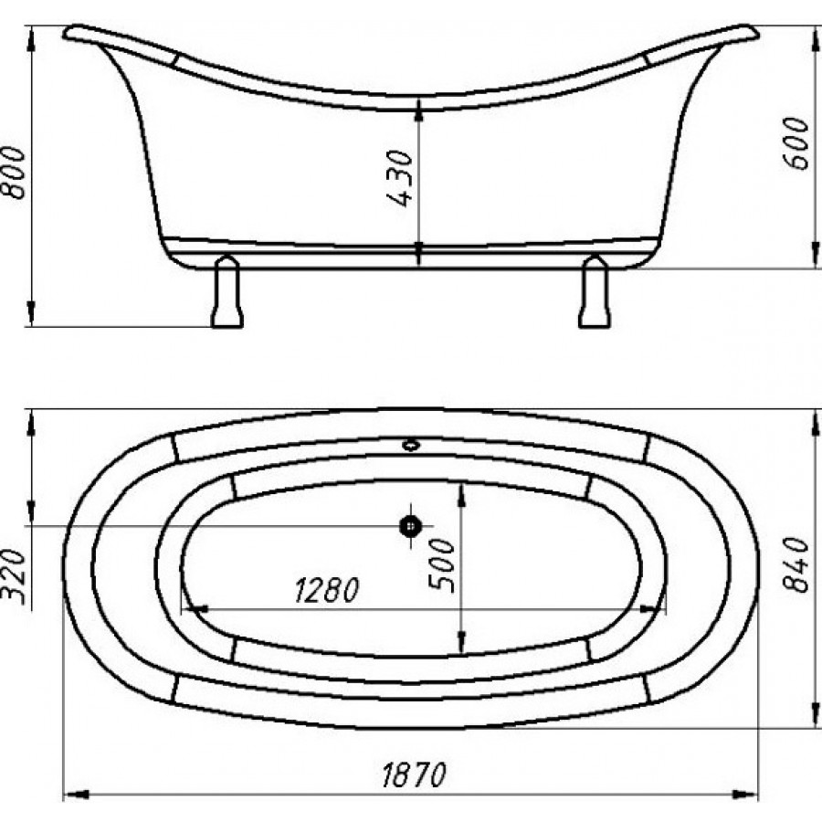 Ванна из искусственного камня Фэма Габриэлла 2 187x84, ножки белые