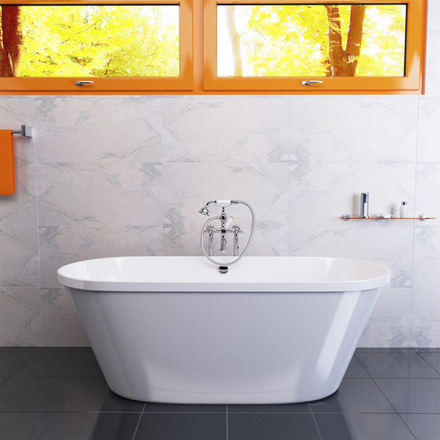 В интерьере санузла, оформленного в стиле ретро, будет гармонично смотреться ванна «Грация» российского производителя «Фэма». Она изготовлена из экологичного композитного материала, по прочности в несколько раз превосходящего натуральный камень и бетон. Искусственный камень обладает превосходными теплоизолирующими и шумопоглощающими характеристиками. В составе литого мрамора содержится пигмент, предотвращающий выгорание поверхности под воздействием УФ-лучей и окрашивание йодом, кофе и другими веществами. За изделием легко ухаживать: все загрязнения удаляются при помощи моющего раствора и мягкой губки. На поверхности не размножаются бактерии и плесень.