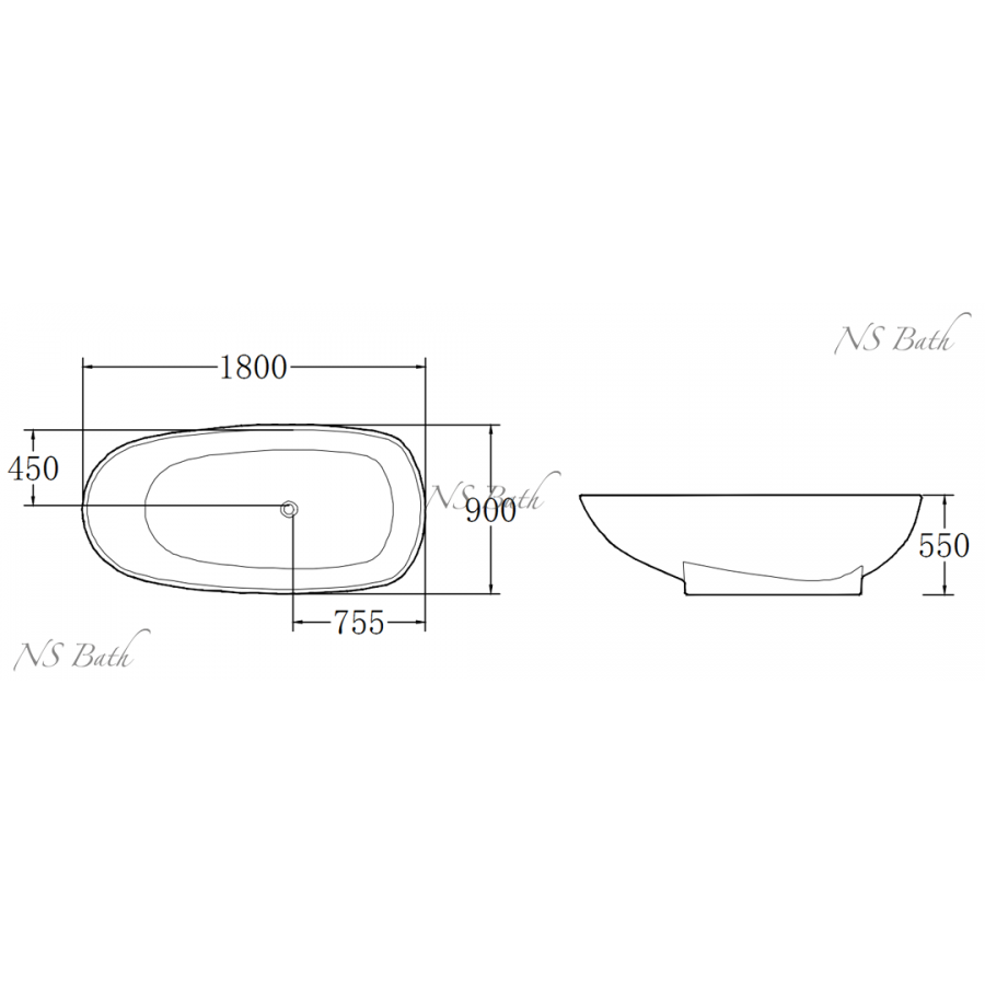 Ванна из искусственного камня NSBath 180х90 NSB-18900G глянцевая