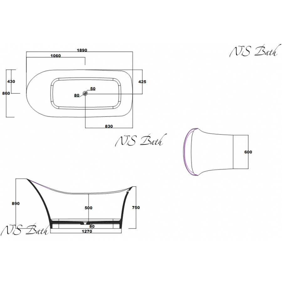 Ванна из искусственного камня NSBath 189х86 NSB-19860G глянцевая