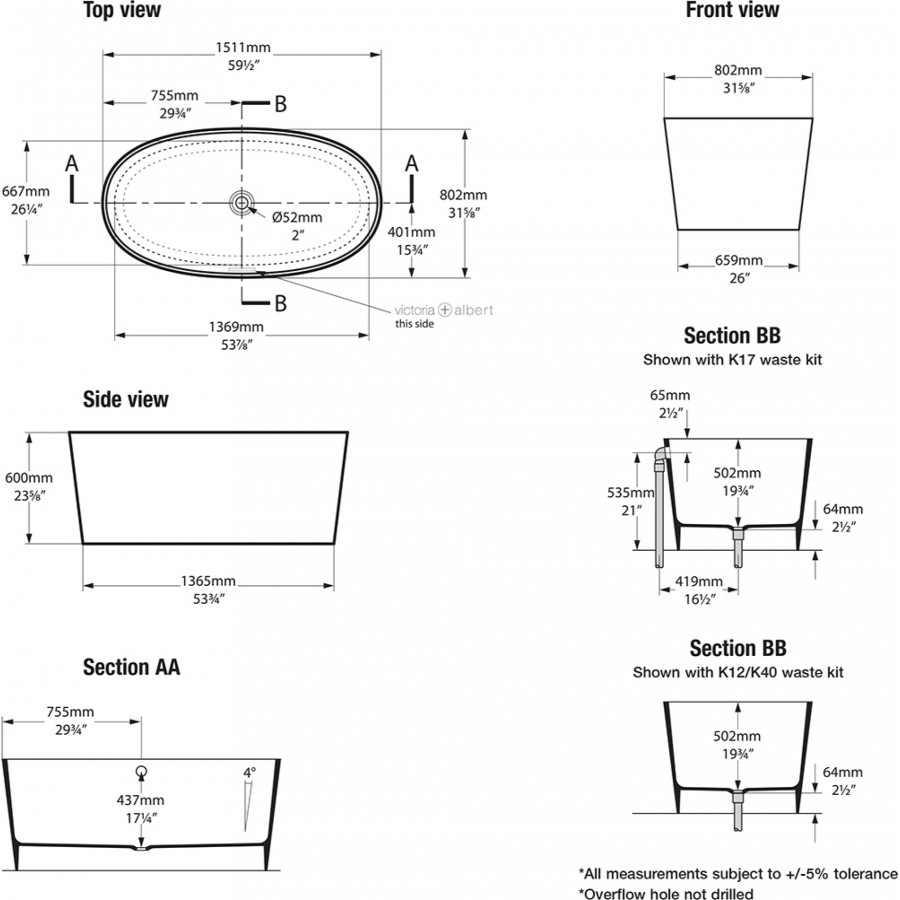 Ванна из искусственного камня Victoria+Albert Ios black