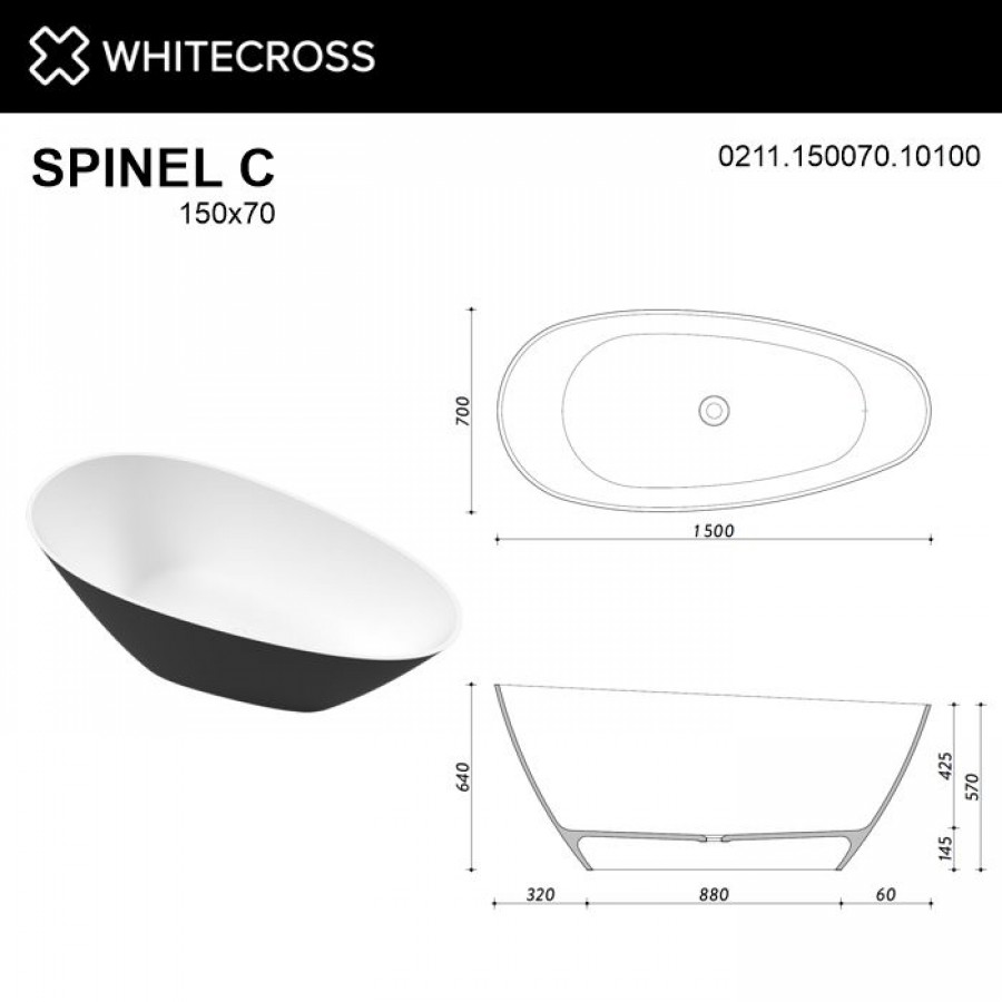 Ванна из искусственного камня Whitecross Spinel C 150x70 черный/белый глянец