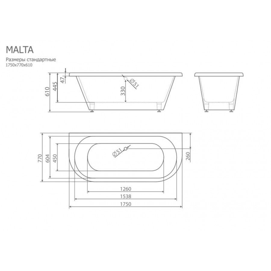 Ванна из литьевого мрамора ESSE Malta 174x74