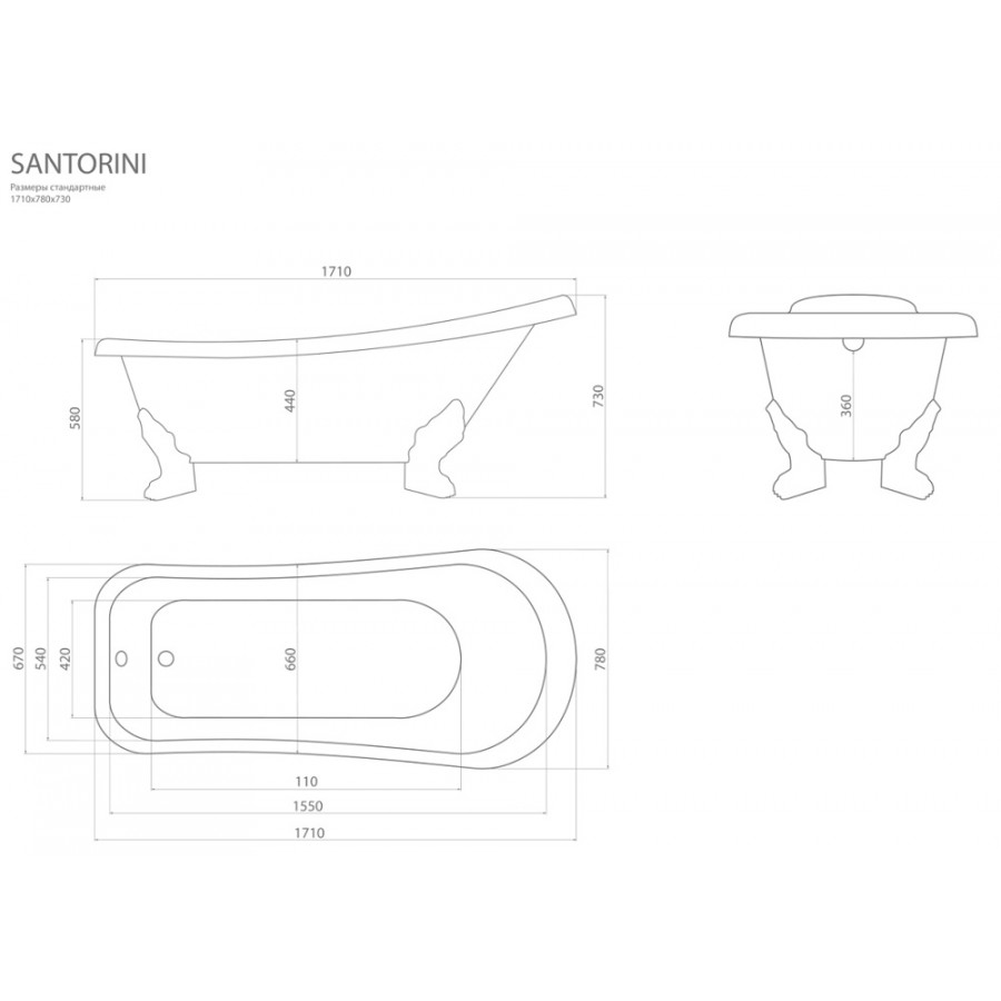 Ванна из литьевого мрамора ESSE Santorini 170x79 ножки хром