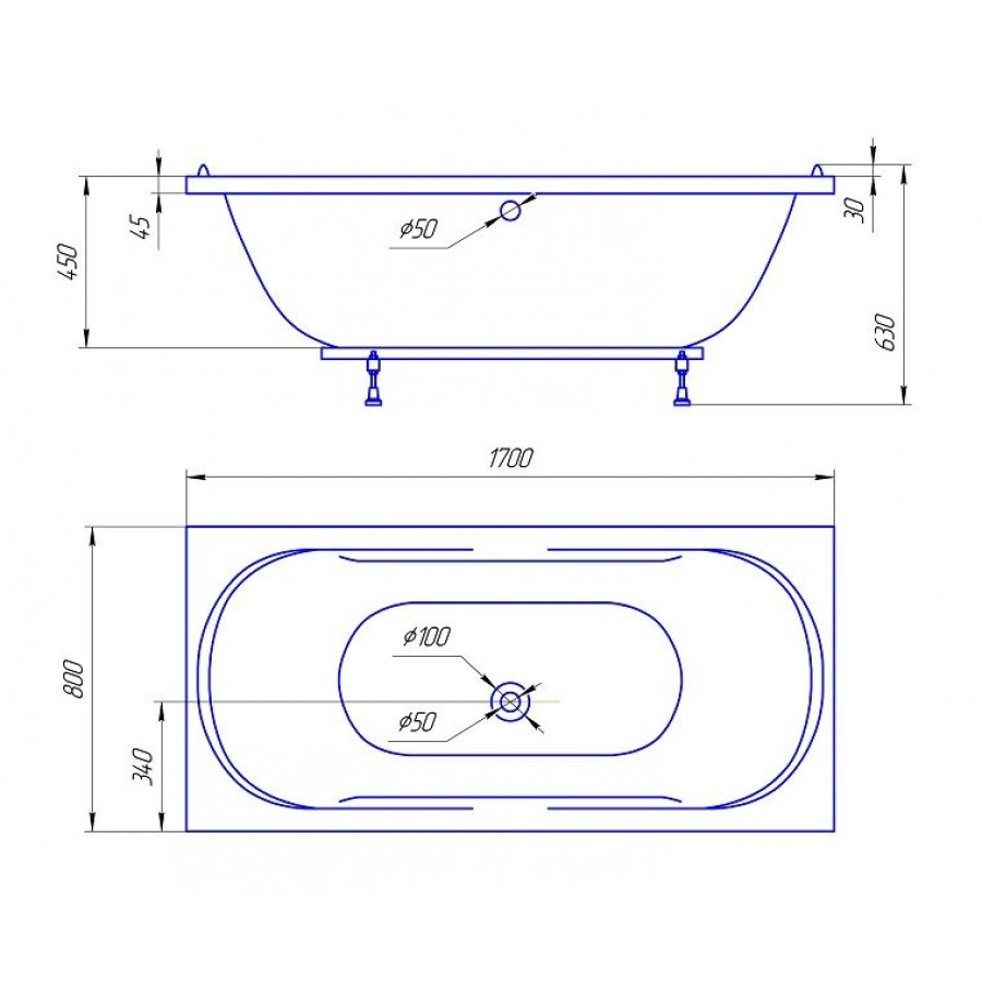 Ванна из литьевого мрамора ЭСТЕТ АСТРА 170х80 ФР-00000620