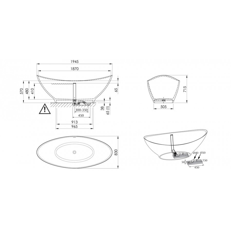 Ванна из литьевого мрамора PAA Felice Silk 195x85