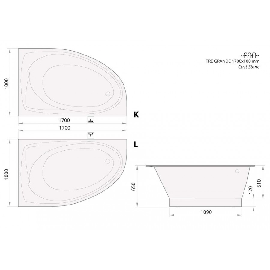 Ванна из литьевого мрамора PAA Tre Grande 170x100 L/R
