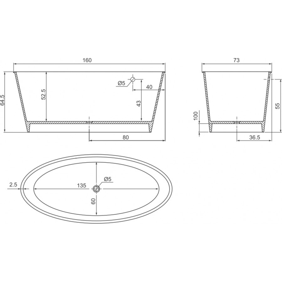 Ванна из литьевого мрамора Цвет и Стиль МариVanna 160x73 белая