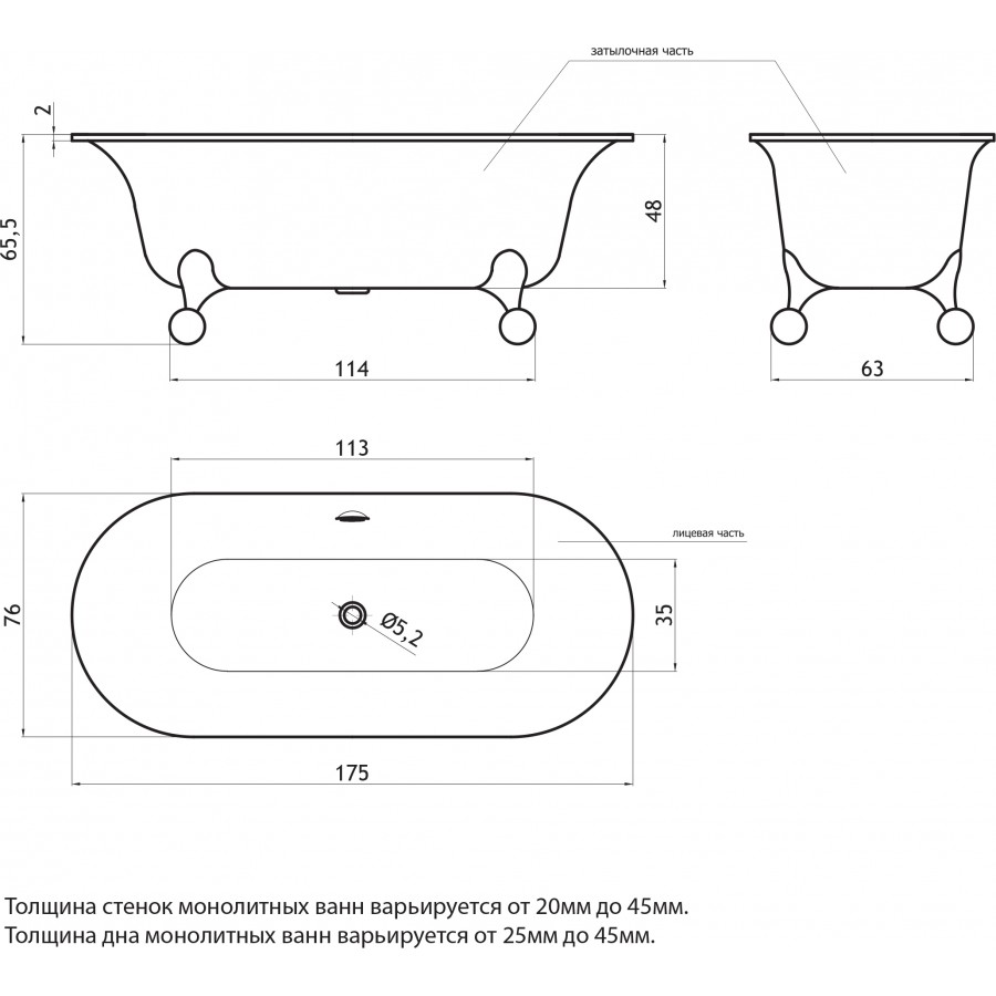 Ванна из литьевого мрамора Цвет и Стиль Особа 175x76, с ножками