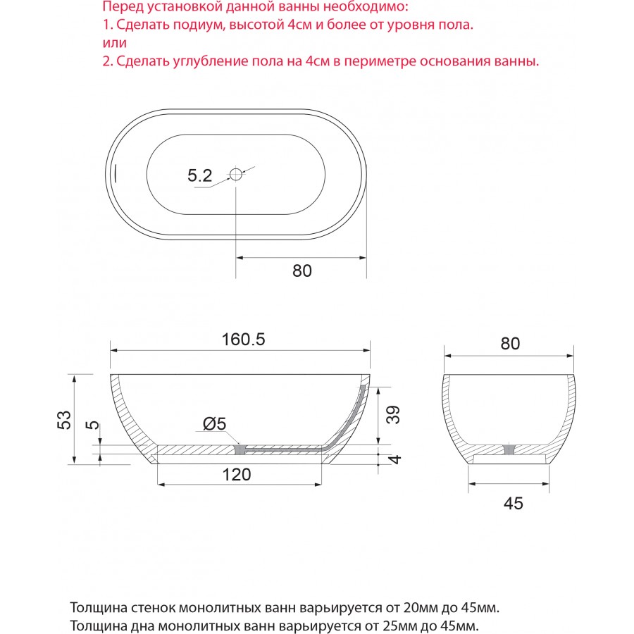 Ванна из литьевого мрамора Цвет и Стиль Спартак 160x80