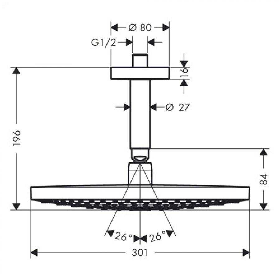 - размер душевого диска: 300 мм